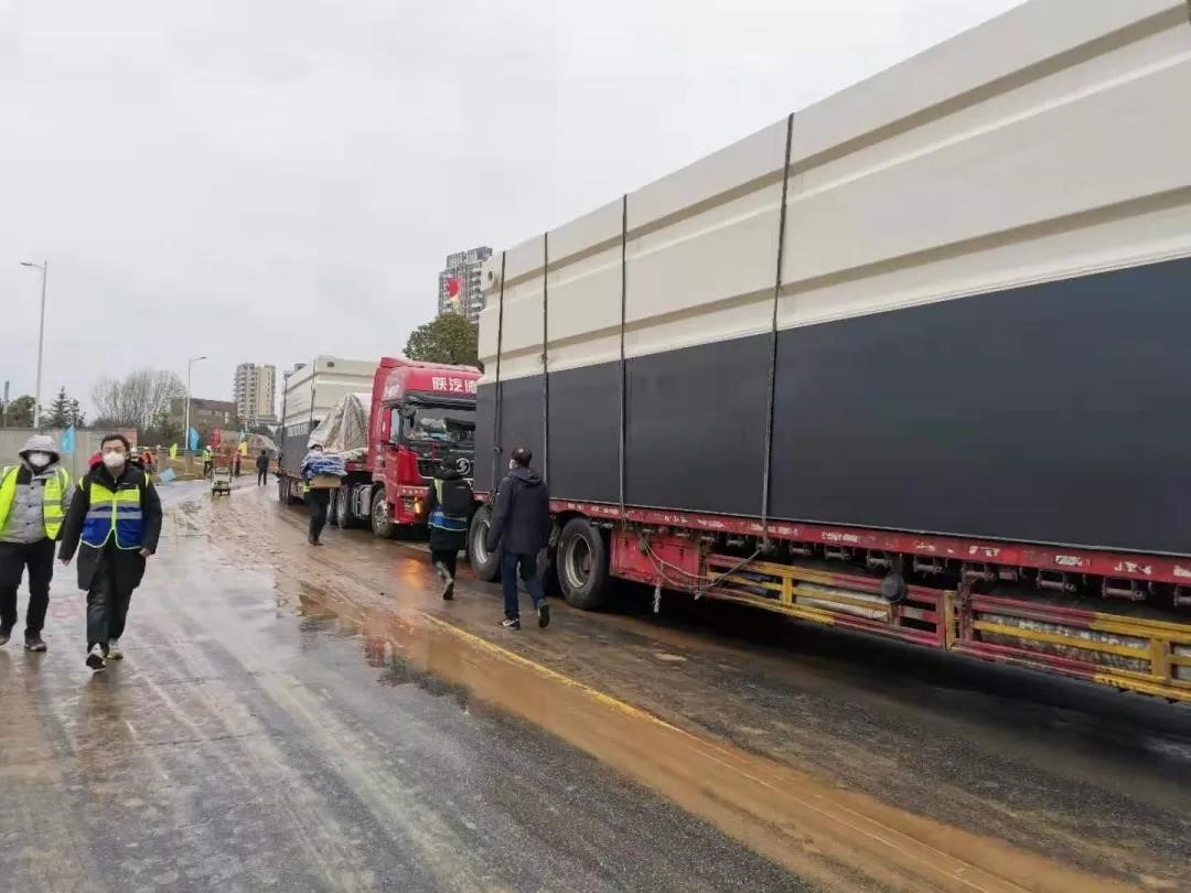 增援員工從貴州播州、四川樂山、湖北大悟、江蘇、河北、浙江、北京……“逆行”趕到火神山。