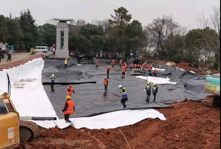 完成場平,開始防滲施工。首批大型裝備連夜冒雪運抵火神山。